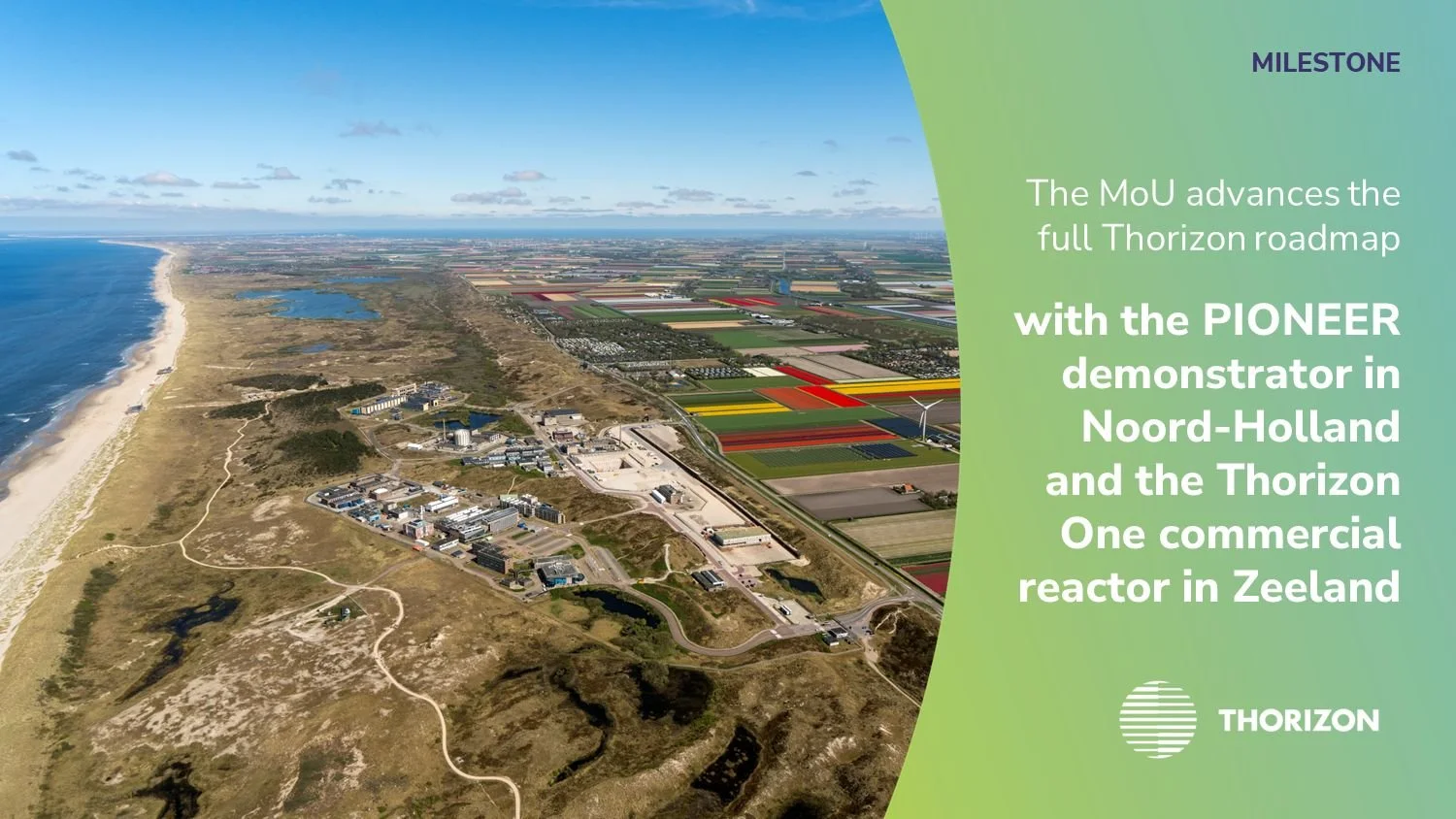 Eight parties have signed a Memorandum of Understanding to advance THORIZON’s full roadmap 📍The PILOT non-nuclear program is expanding in Zeeland 📍The PIONEER nuclear demonstrator will be built at NRG PALLAS in Noord-Holland 📍Thorizon One, Europe’s first commercial molten salt reactor, is targeting Zeeland as its home.
